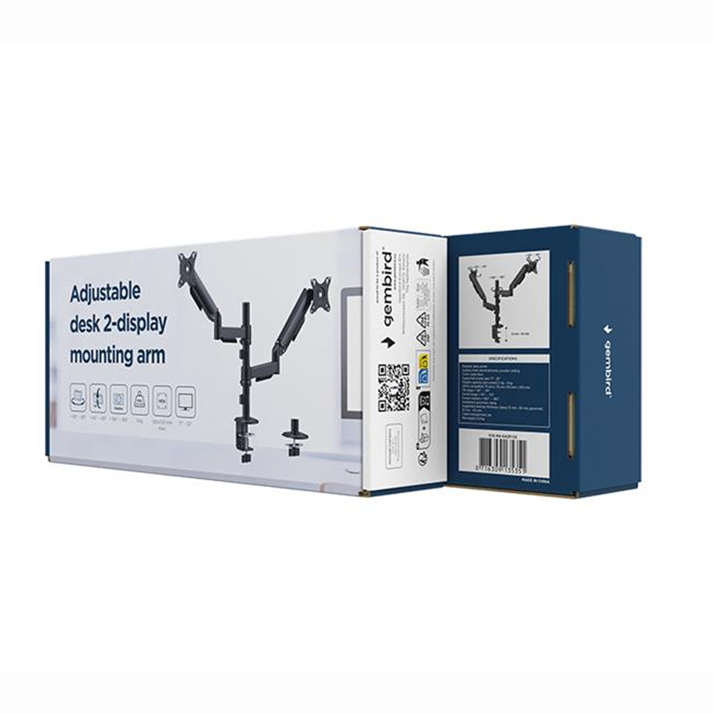 GEMBIRD ADJUSTABLE DESK 2-DISPLAY MOUNTING ARM, 17”-32” BLACK