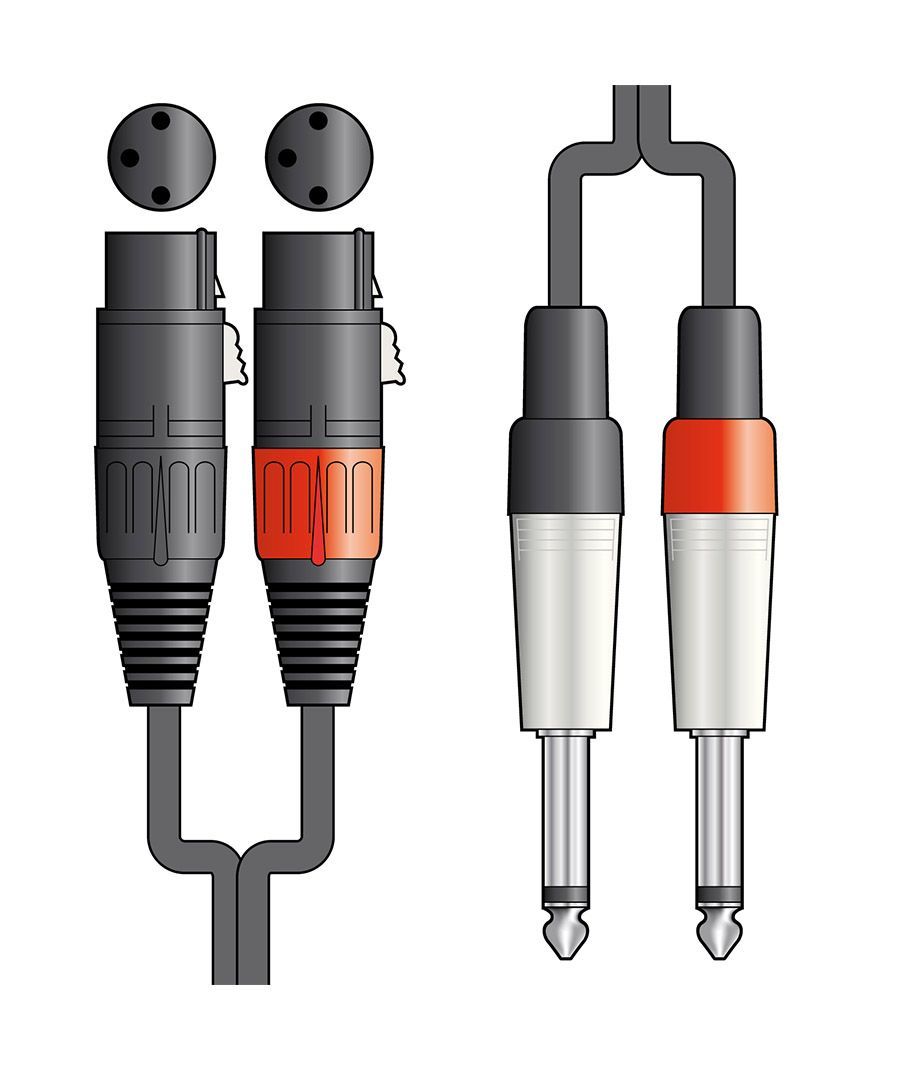 Classic Audio Leads 2 x XLR Female - 2 x 6.3mm Mono Jack Plugs 3.0m