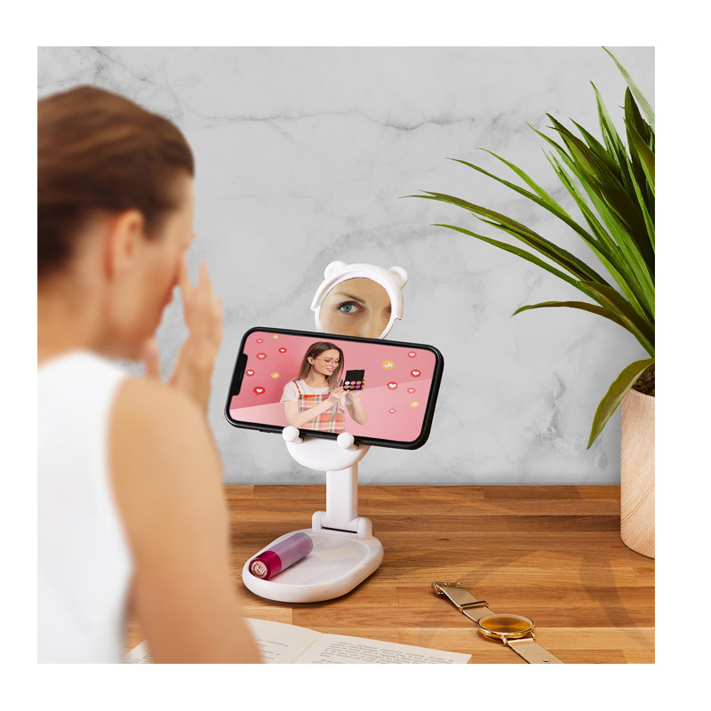 Αναδιπλούμενη Βάση για Smartphone με Καθρέπτη 16 x 8.5 x 3 cm Χρώματος Λευκό The Concept Factory HT2184
