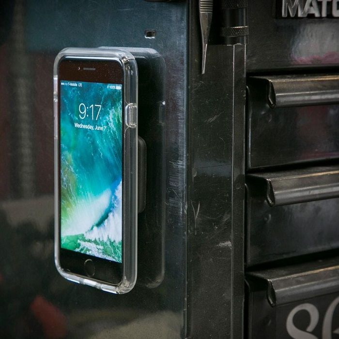 Αφού τοποθετήσετε τη μεταλλική πλάκα με έναν από τους παραπάνω τρόπους, απλά πλησιάζετε τη συσκευή σας στη μαγνητική βάση στήριξης και εκείνη αυτόματα προσκολλάται στην τελευταία επιτρέποντας την ακριβή ρύθμιση της θέσης (οριζόντια ή κάθετη τοποθέτηση).