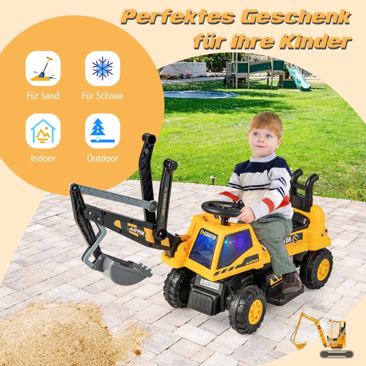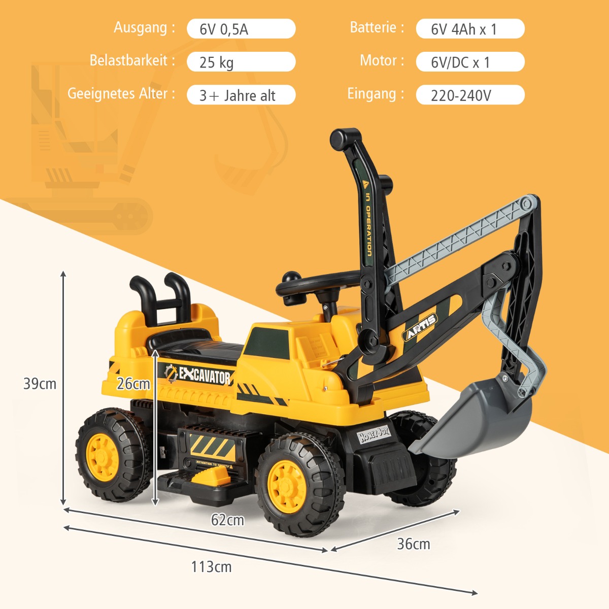 Costway Παιδικός Εκσκαφέας 6V με Περιστρεφόμενο & Ρυθμιζόμενο Κουβά & Μουσική Μαύρο + Κίτρινο