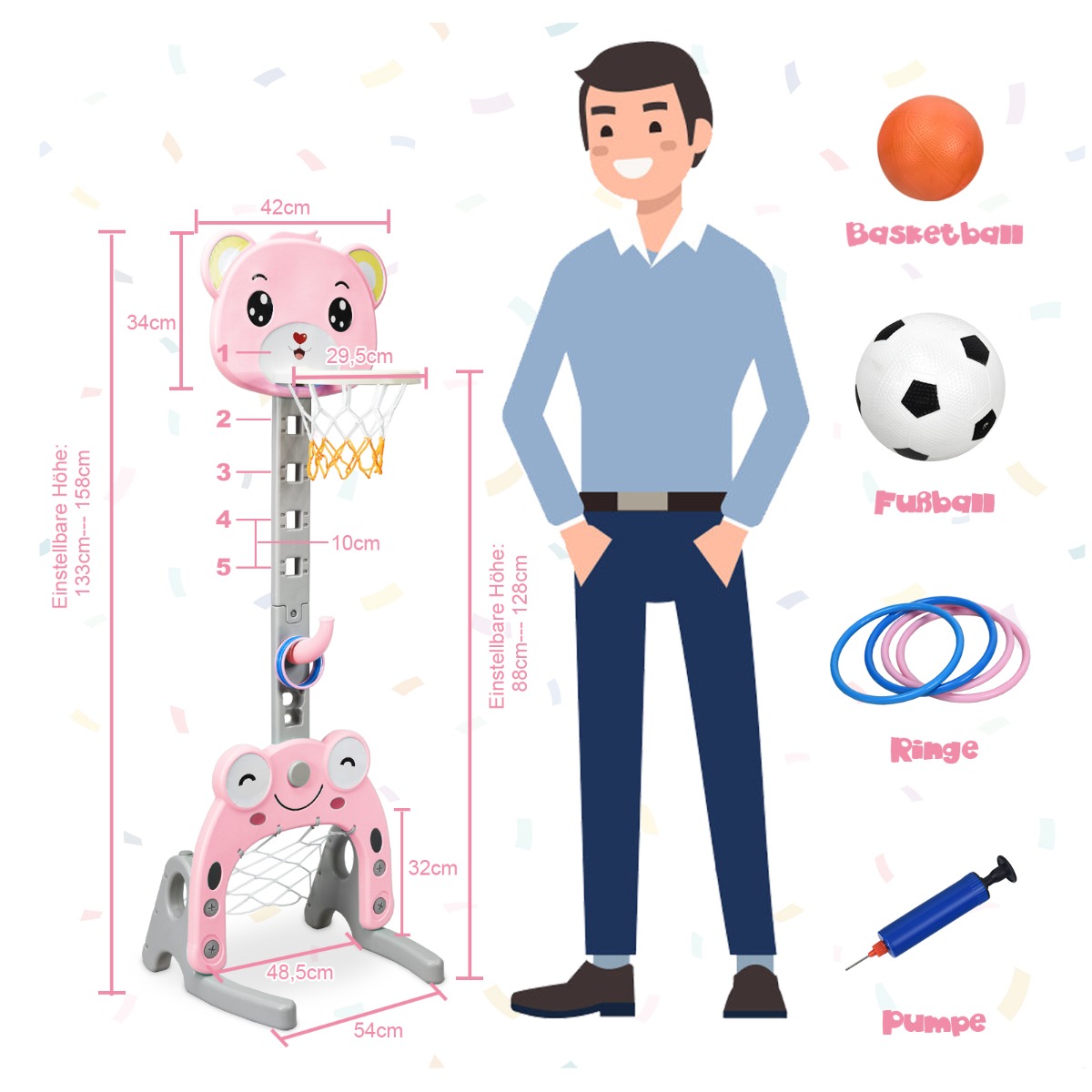Ο μοναδικός μας μπάσκετ σταντ με σχέδιο ζώου βοηθά τα παιδιά να αναπτύξουν κοινωνικές δεξιότητες, φυσική συντονιστικότητα και ισορροπία. Αυτό το εκπληκτικό 3-σε-1 αθλητικό κέντρο επιτρέπει στα παιδιά να απολαμβάνουν στιγμές διασκέδασης και αυτοπεποίθησης παίζοντας μπάσκετ, ποδόσφαιρο και ριψοκίνηση δαχτυλιδιών, καλλιεργώντας ταυτόχρονα το ομαδικό πνεύμα και τη φιλοδοξία τους.