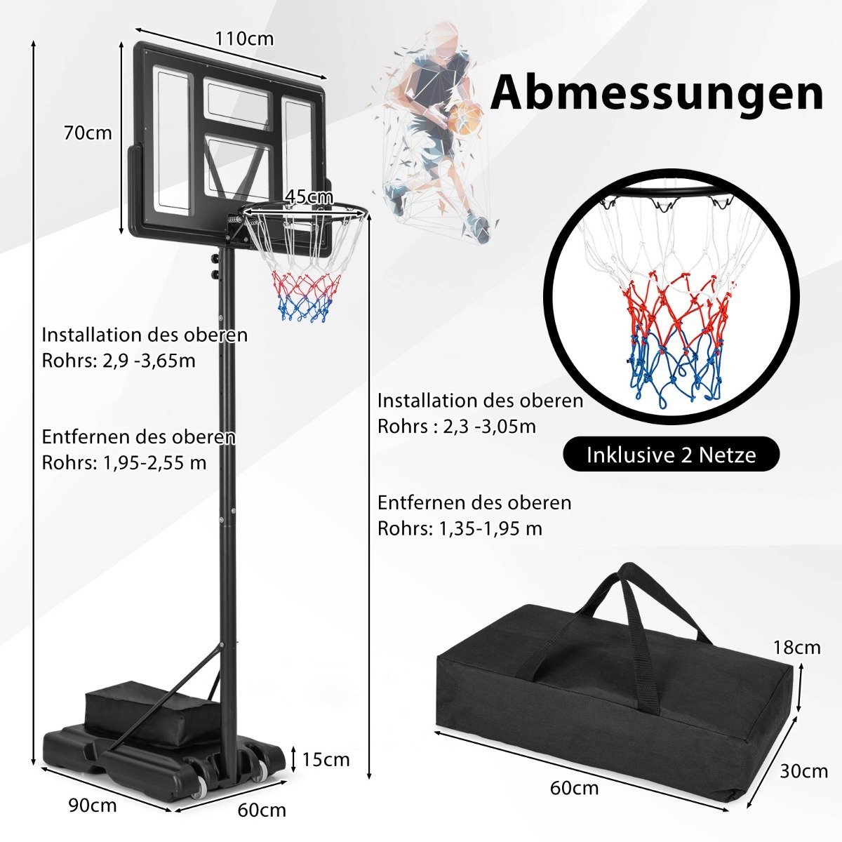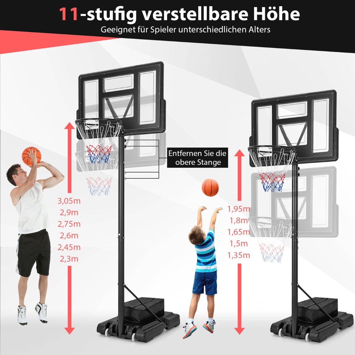 Costway Ρυθμιζόμενη σε ύψος μπασκέτα εξωτερικού χώρου με βάση και δίχτυα 135-305 cm SP38152