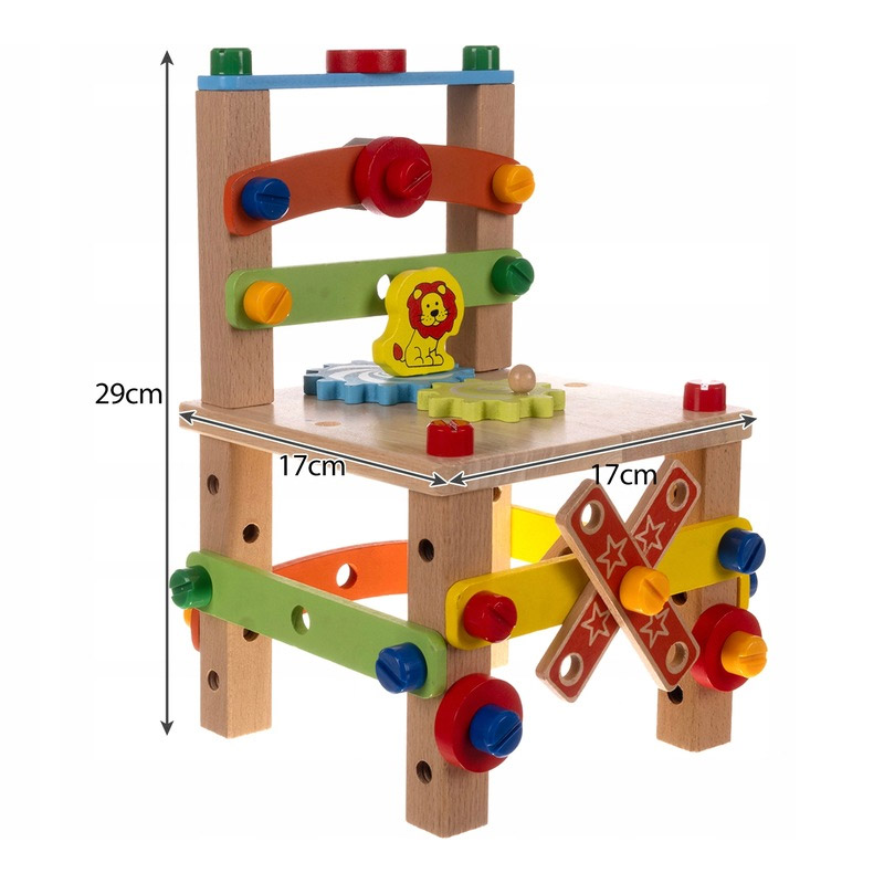 Η παιδική καρέκλα, από την εταιρία Kruzzel, διατίθεται σε μέρη - απλώς συναρμολογήστε τη και στερεώστε την με βίδες. Τα ξύλινα παιχνίδια είναι μια διαχρονική πρόταση που θα ενθουσιάσει κάθε παιδί. Η κλασική ομορφιά του ξύλου και η ανθεκτικότητά του το έκαναν πάντα να εκτιμάται ιδιαίτερα. Αυτό το υλικό φαίνεται καλό και σε φυσικό χρώμα και βαμμένο, και χάρη στο γεγονός ότι το παιχνίδι είναι κατασκευασμένο από ξύλο, είναι ασφαλές για κάθε παιδί. Το φυσικό υλικό σημαίνει ότι ακόμα κι αν ένα παιδί βάλει το παιχνίδι στο στόμα του, δεν θα έρθει σε επαφή με τεχνητά υλικά.