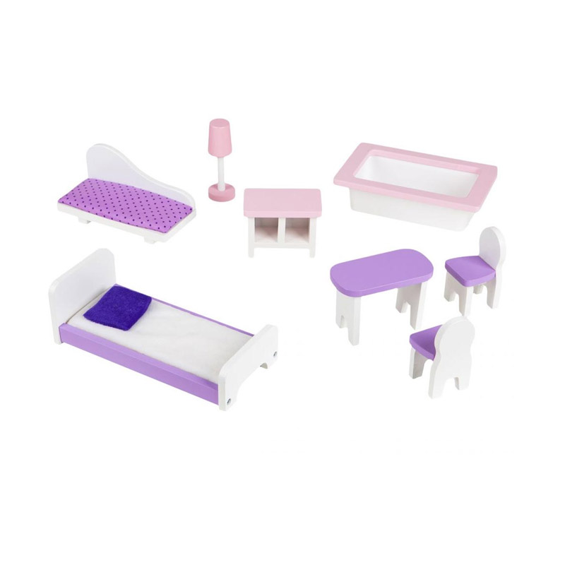 Το σετ περιλαμβάνει επίσης ένα σετ 8 ξύλινων επίπλων. Όλα τα στοιχεία μπορούν να αφαιρεθούν ελεύθερα και να μετακινηθούν χωρίς κανέναν περιορισμό.