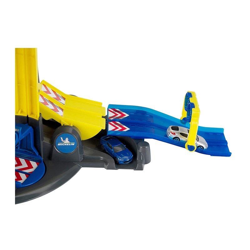 Το παιδικό γκαράζ στάθμευσης, από την εταιρία Klein, είναι κατασκευασμένο από πλαστικό υψηλής ποιότητας σε σχέδιο Michelin και έχει τέσσερα επίπεδα που συνδέονται με ανελκυστήρα. Τα δύο αυτοκίνητα (συμπεριλαμβάνονται) μπορούν να τρέξουν στη διπλή ράμπα κατάβασης, να οδηγήσουν ή να πηδήξουν πάνω από την τραμπάλα και να πηδήξουν τη ράμπα και να μετρήσουν και να καταγράψουν τους αγώνες και τις θέσεις τους με τον μετρητή γύρου.