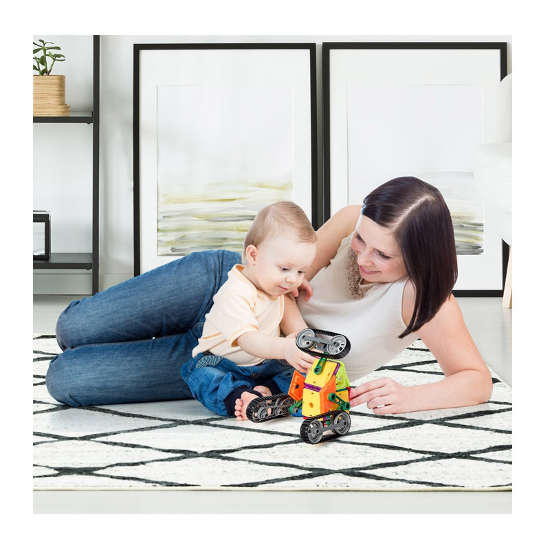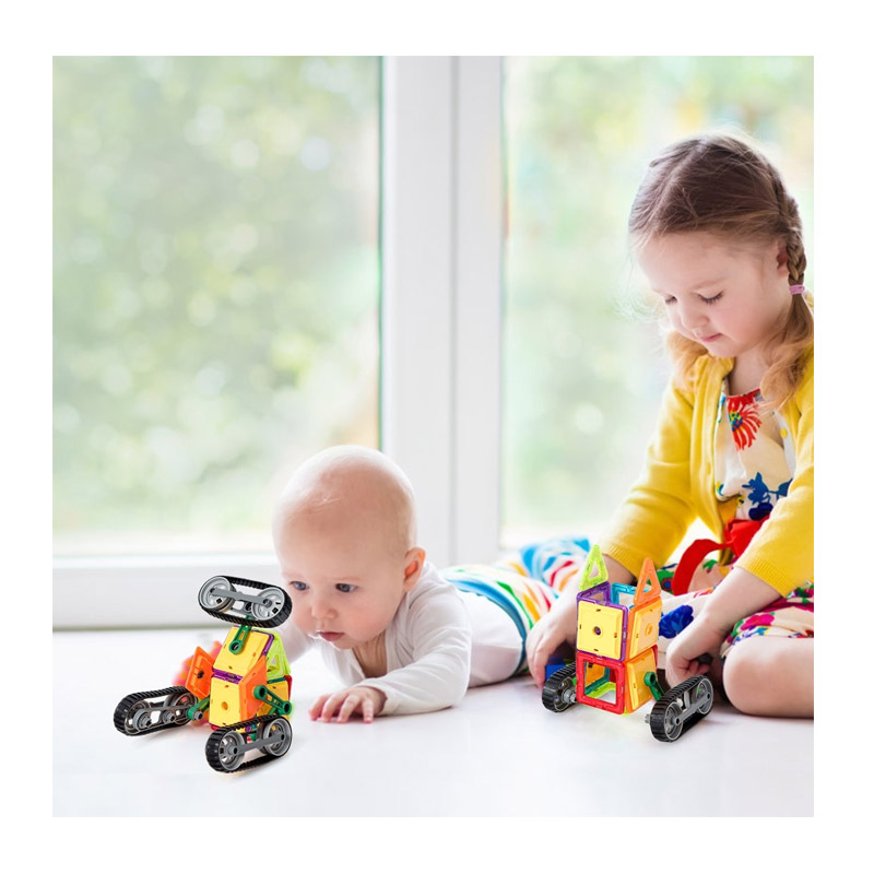 Με τα μαγνητικά κομμάτια, τα παιδιά μπορούν να αναπτύξουν την αναγνώριση των σχημάτων και των χρωμάτων βελτιώνοντας την κατανόησή τους για τις κατασκευαστικές και κινητικές δεξιότητες κατά την κατασκευή τους.