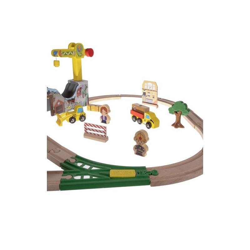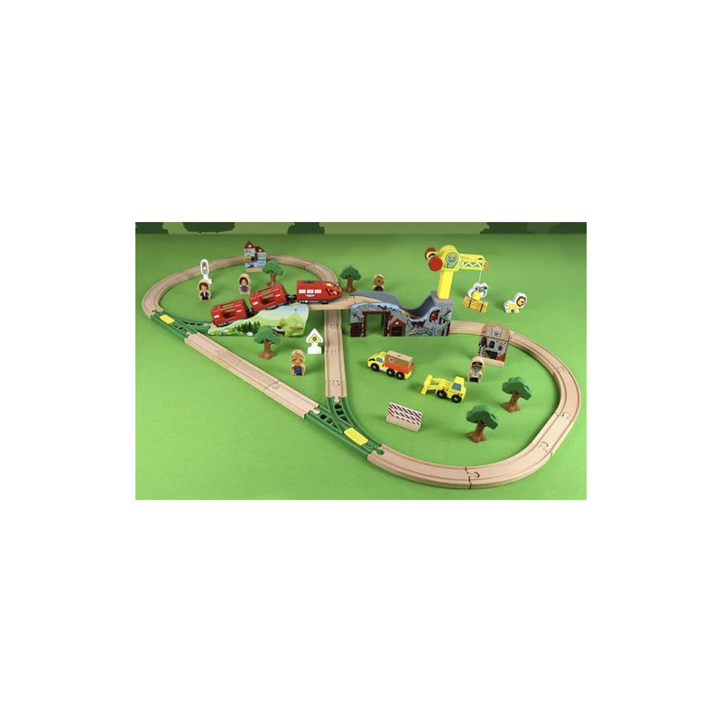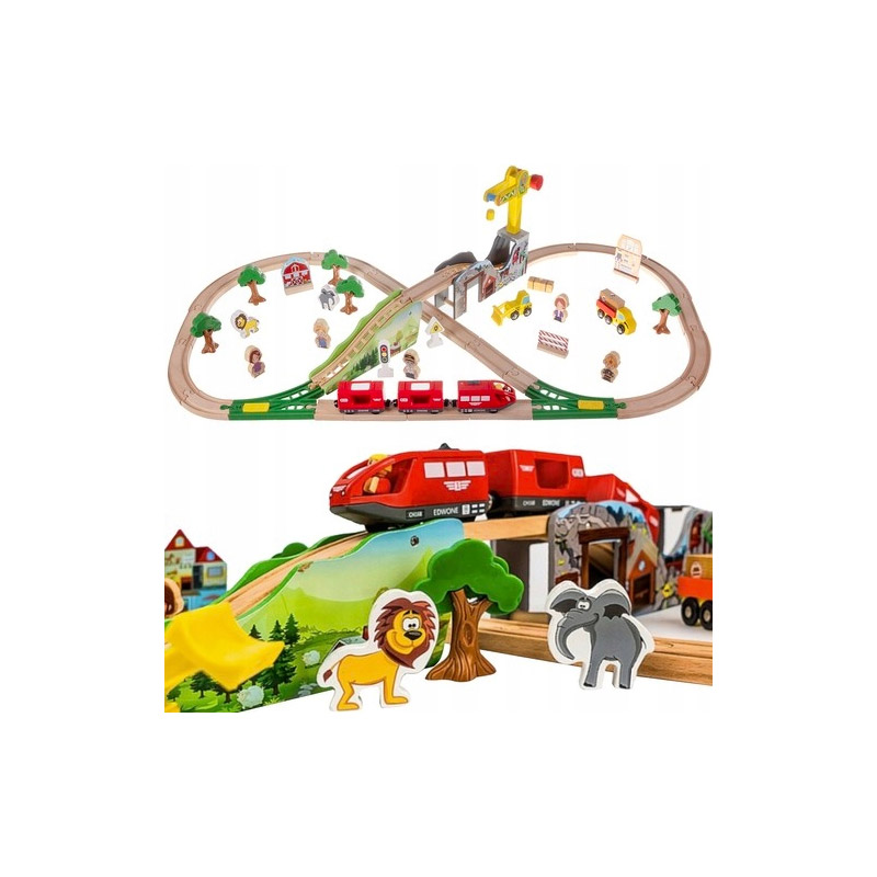 Το σετ, από την εταιρία Kruzzel, αποτελείται από 57 τμχ, τα οποία μπορούν να τακτοποιηθούν σύμφωνα με τις δικές σας ιδέες. Περιλαμβάνει, μεταξύ άλλων, ράγες, ένα επιβατικό τρένο, βαγόνια κατασκευής, ένα σύνολο δέντρων και πινακίδων, φιγούρες, ζώα και έναν γερανό. Τα στοιχεία του τρένου συνδέονται χρησιμοποιώντας μαγνήτες. Οι μαγνήτες είναι ισχυροί - δεν αφήνουν να φύγουν ακόμα και όταν σηκωθεί ολόκληρο το σετ.