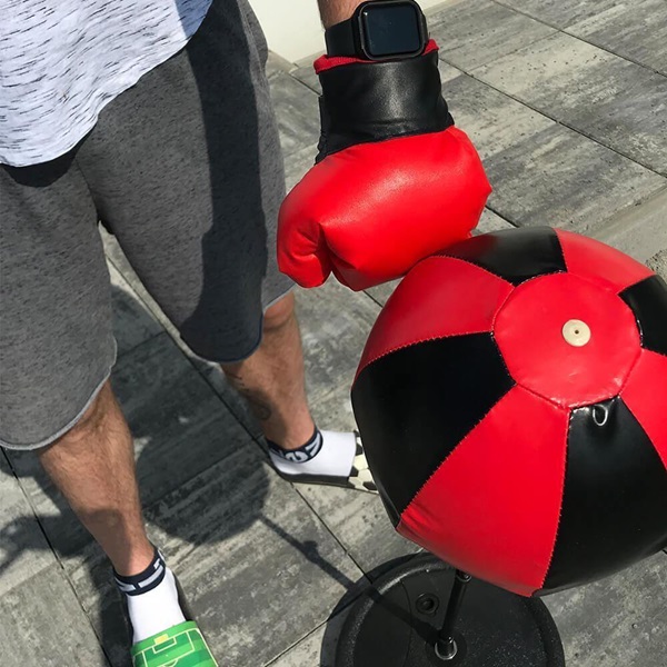 Το αχλάδι είναι στερεωμένο σε μία ράβδο, η οποία μέσω ενός ελατηρίου συνδέεται με μία βάση που εμποδίζει την κίνηση του εξοπλισμού κατά το χτύπημα. Το αχλάδι πυγμαχίας είναι φουσκωμένο και βοηθά στην βελτίωση της κινητικότητας και της ταχύτητας του παιδιού, χωρίς να επιβαρύνει τη σπονδυλική στήλη. Η συνολική ύψος της κατασκευής είναι 124 cm.