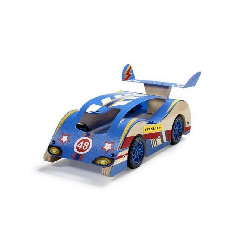 Stanley JR OK004-SY Αγωνιστικό Αυτοκίνητο Δημιουργική ενασχόληση για παιδιά και ενήλικες που συνδυάζει διασκέδαση με μάθηση Η συσκευασία περιλαμβάνει: προκατασκευασμένα ξύλινα κομμάτια, πολύχρωμα πλαστικά εξαρτήματα, όλες τις βίδες και τα καρφιά που χρειάζονται για τη συναρμολόγηση του αγωνιστικού αυτοκινήτου, γυαλόχαρτο, μπογιές, πινέλο, αυτοκόλλητα και οδηγίες συναρμολόγησης Μέγεθος ξύλινης κατασκευής: large Διαστάσεις του αγωνιστικού αυτοκινήτου συναρμολογημένο: 9Μ × 19.8Π × 8.8Υ cm Κατάλληλο για παιδιά ηλικίας: 5+