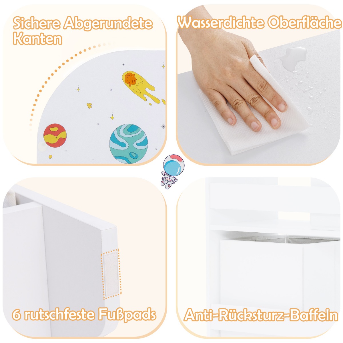 - Σταθερή δομή με ασφαλή σχεδίαση: Εκτός από τη σταθερή δομή, αυτός ο οργανωτής αποθήκευσης για μικρά παιδιά διαθέτει 6 αντιολισθητικά μαξιλαράκια ποδιών που όχι μόνο προστατεύουν το πάτωμα από γρατσουνιές αλλά και εξασφαλίζουν σταθερότητα κατά τη χρήση. Ακόμα πιο σημαντικό, το πακέτο περιλαμβάνει αντιολισθητικές συσκευές που σας επιτρέπουν να στερεώσετε το ντουλάπι στον τοίχο για επιπλέον σταθερότητα και ασφάλεια.