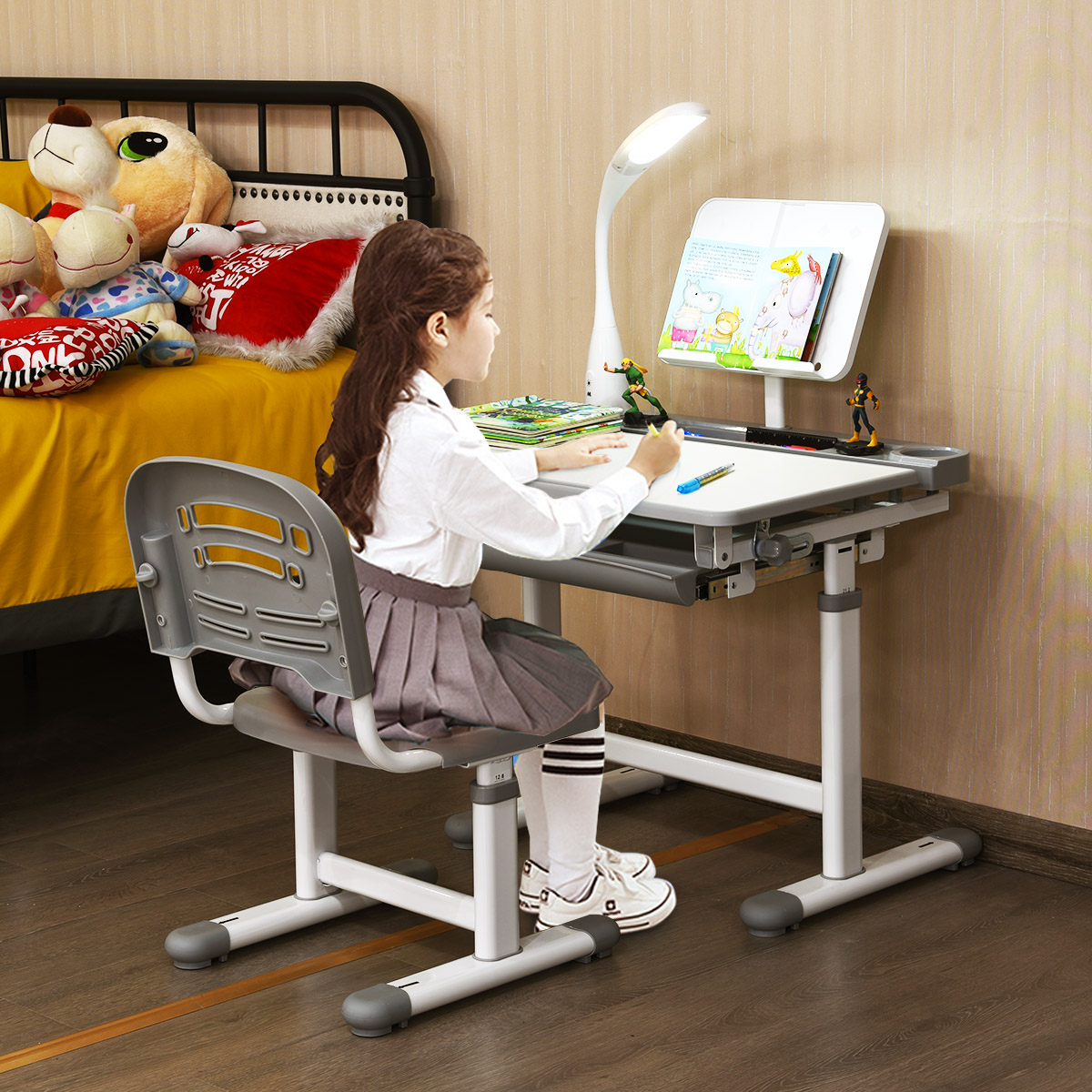 Costway Παιδικό Γραφείο Ρυθμιζόμενο με Λάμπα και Καρέκλα - Γκρι HW67394DE-GR