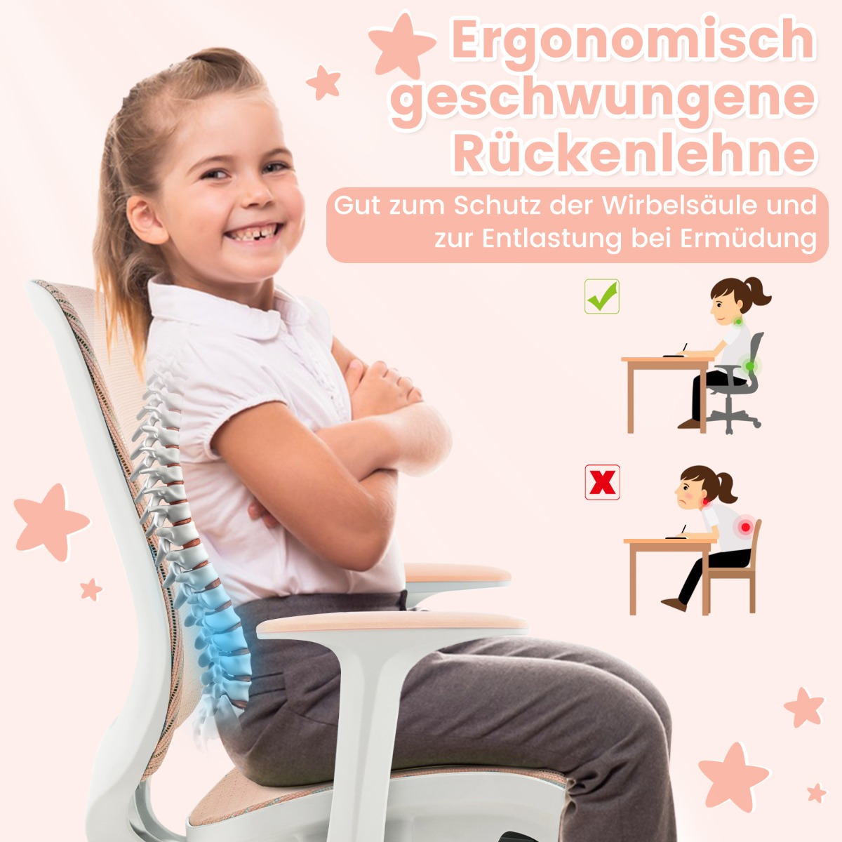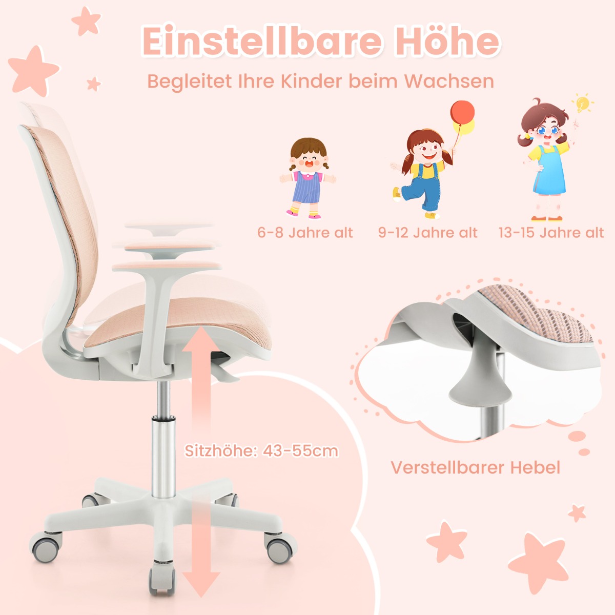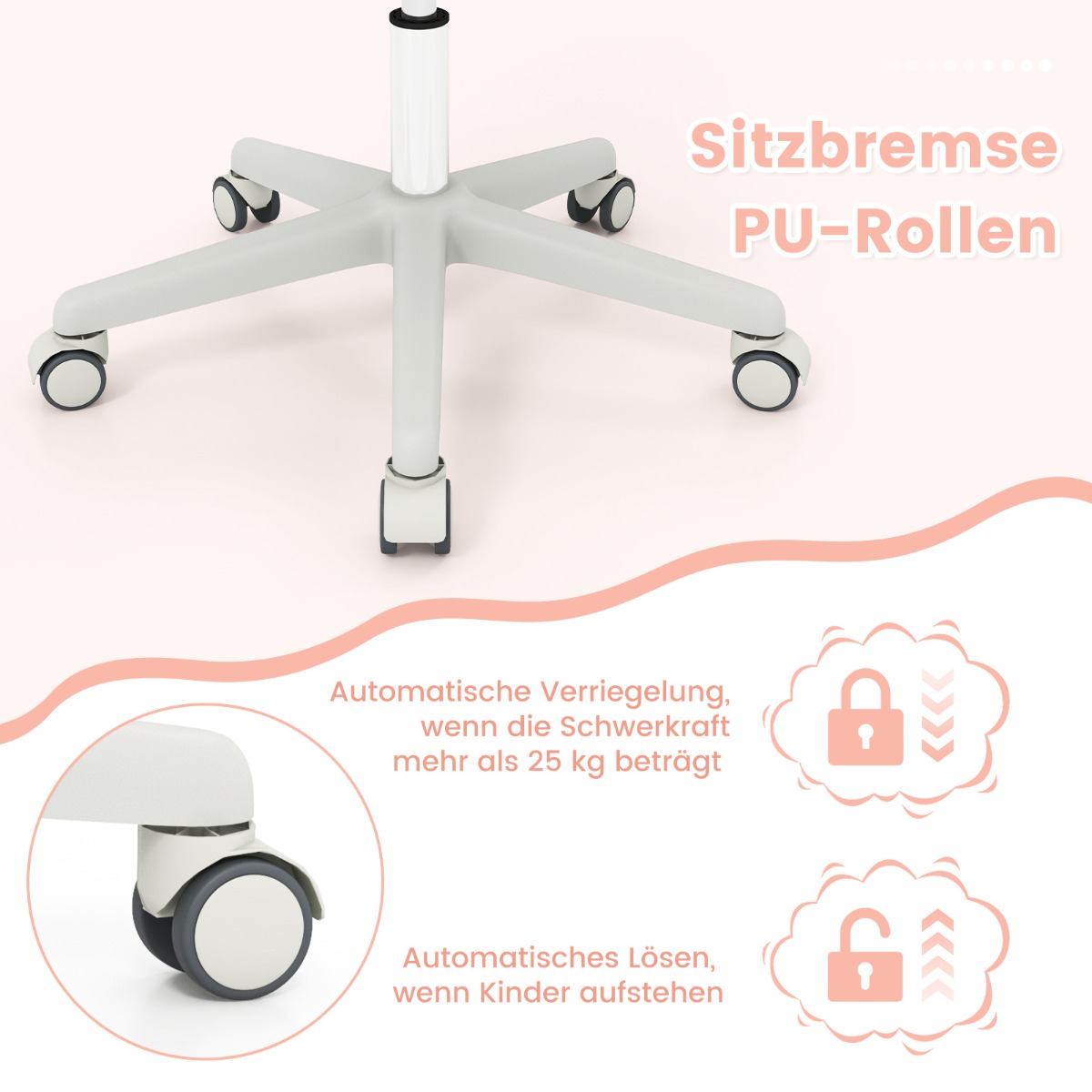 Costway Ροζ Εργονομική Καρέκλα Γραφείου για Παιδιά με Ρυθμιζόμενο Ύψος και Φρένο Καθίσματος HY10192PK