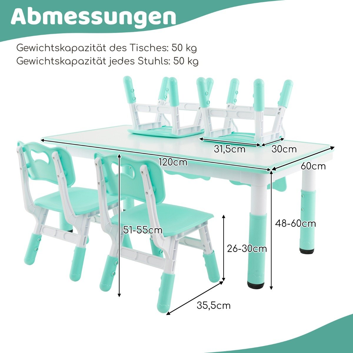 Costway Σετ Παιδικού Τραπεζιού και 4 Καρεκλών με Ρυθμιζόμενο Ύψος και Επιφάνεια Γκράφιτι HY10179GN