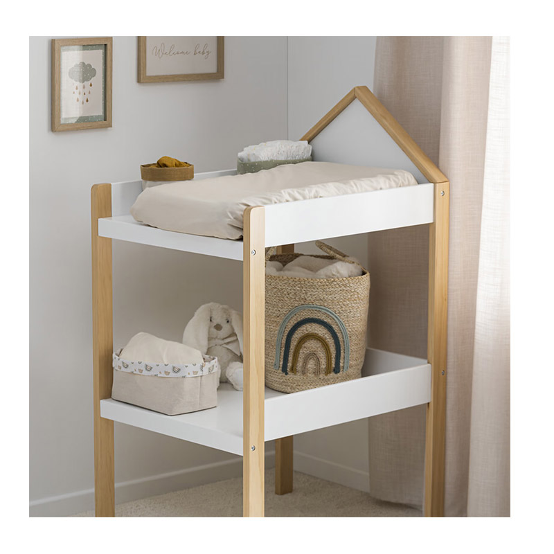 Η βρεφική αλλαξιέρα, από την εταιρία Atmosphera, είναι κατασκευασμένη από ξύλο MDF με στηρίγματα από ξύλο οξιάς και είναι ιδανική και πρακτική για το βρεφικό δωμάτιο. Το επάνω μέρος είναι ειδικά σχεδιασμένο για να τοποθετηθεί το μαξιλαράκι για να αλλάζετε το μωρό με ασφάλεια.