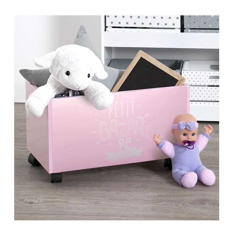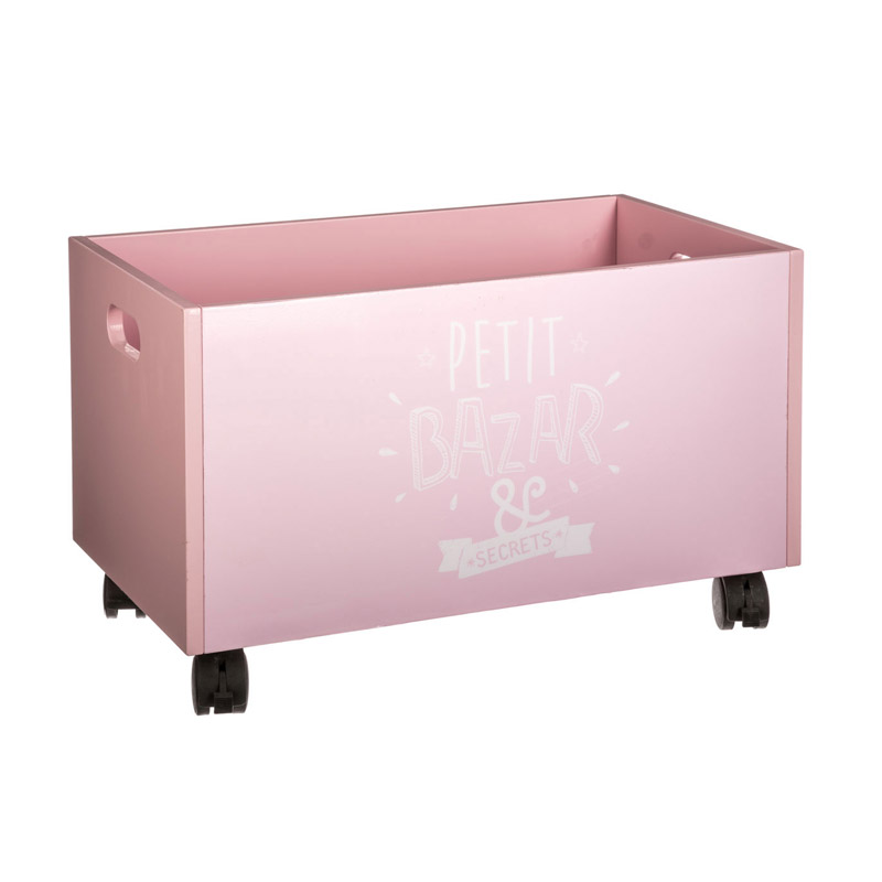 Ξύλινο Τροχήλατο Κουτί Αποθήκευσης Παιχνιδιών 48 x 28 x 28.5 cm Χρώματος Ροζ Toys Atmosphera 127141A