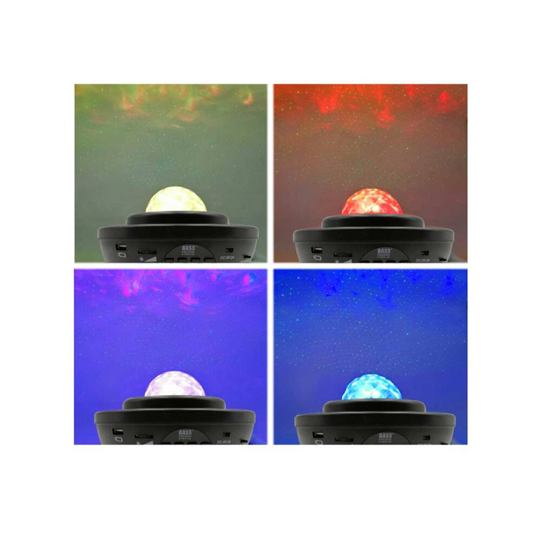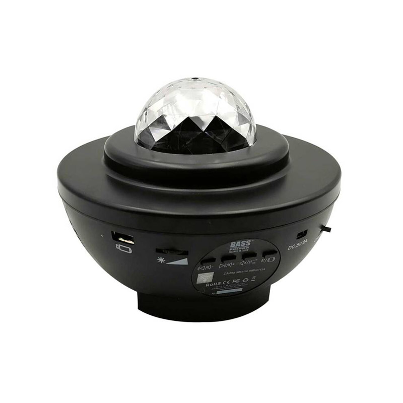 Ο προβολέας, από την εταιρία Bass Polska, μπορεί να χρησιμοποιηθεί ως φωτιστικό, προβολέας αστεριών και κυμάτων και ως ηχείο Bluetooth. Έχει τέσσερα χρωματιστά φώτα (μπλε, κόκκινο, λευκό, πράσινο), δυνατότητα ρύθμισης της ταχύτητας κίνησης του φωτός (χωρίς κίνηση, αργή, μεσαία, γρήγορη), λειτουργία αργής αλλαγής χρώματος με ξεθώριασμα του τρέχοντος χρώματος / χρωμάτων και ομαλή μετάβαση στο επόμενο χρώμα και ρυθμιζόμενη φωτεινότητα φωτός (40%, 70%, 100%). Ο ενσωματωμένος χρονοδιακόπτης σας επιτρέπει να ορίσετε μια ώρα για την αυτόματη απενεργοποίηση του προβολέα.