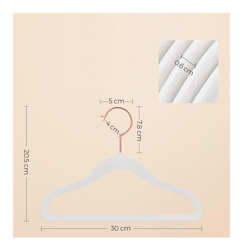 Το σετ, από την εταιρία Songmics, αποτελείται από 50 παιδικές βελούδινες κρεμάστρες, ώστε να αποφεύγεται η ολίσθηση των ρούχων. Διαθέτουν μεταλλικά άγκιστρα, ανθεκτικά στη σκουριά και στη διάβρωση, τα οποία περιστρέφονται κατά 360°, για μεγαλύτερη ευκολία.