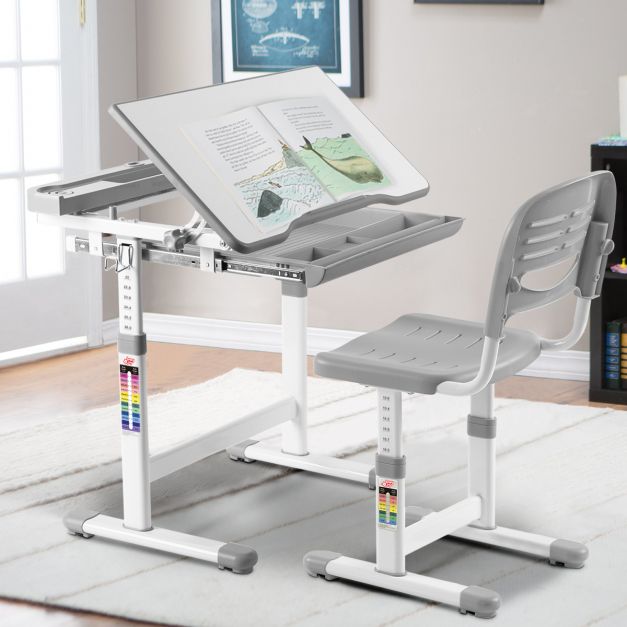Σχολικό Γραφείο με Καρέκλα για Παιδιά με Δυνατότητα Ρύθμισης Υψους και Κλίσης COSTWAY HW65906GR