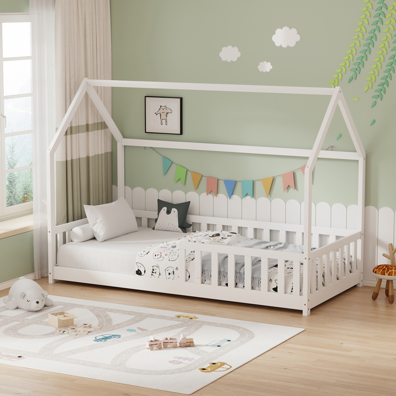 Παιδικό κρεβάτι Callan τ. Montessori με κιγκλίδωμα pakoworld ξύλο πεύκου σε λευκή απόχρωση 90x190εκ